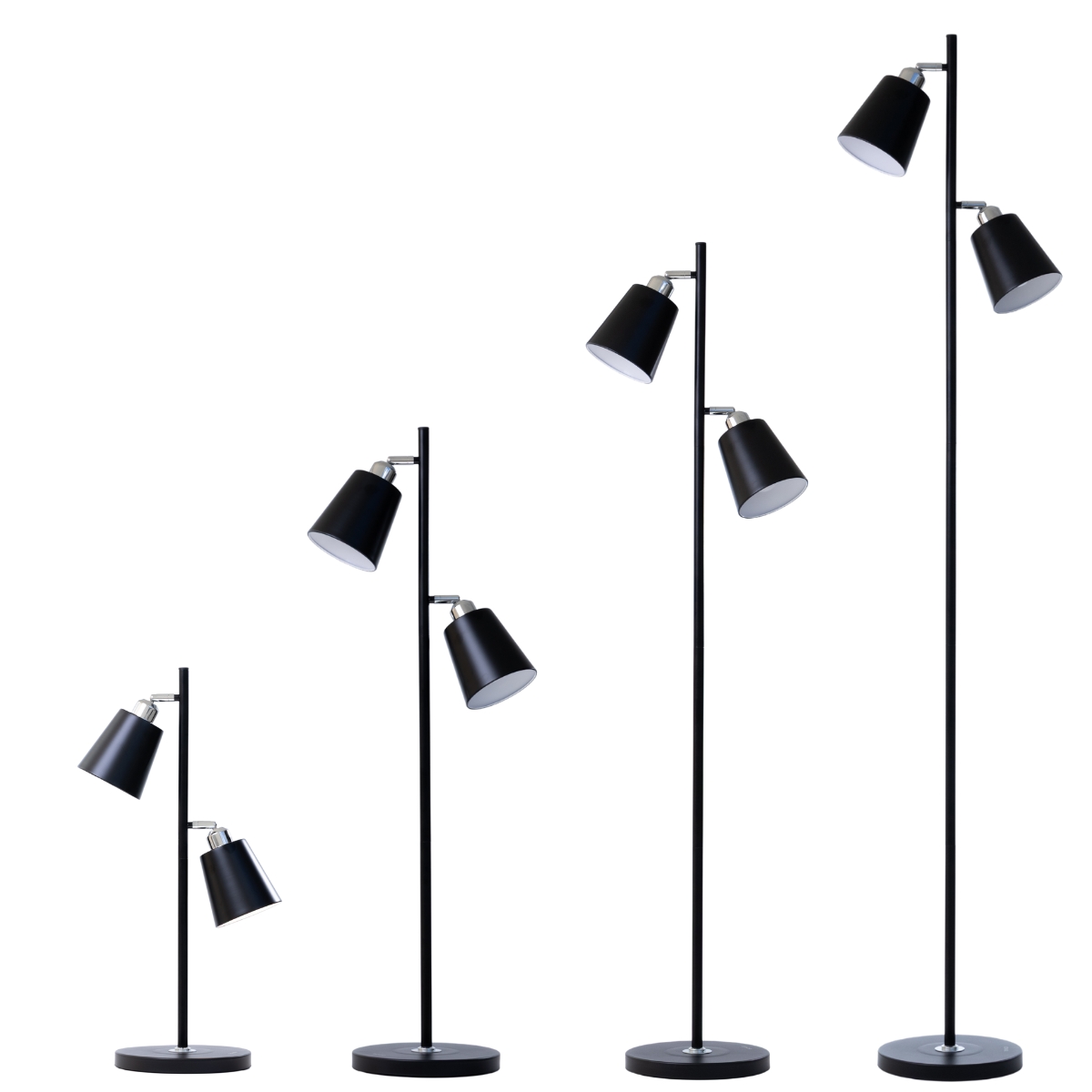 A Luminária de Chão Preta TechLed com Duas Cúpulas foi desenvolvida para oferecer iluminação funcional, moderna e totalmente ajustável.
